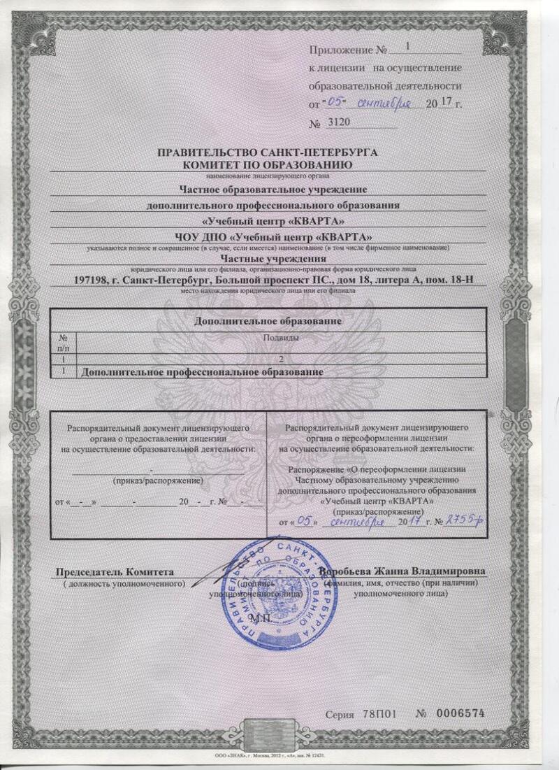 ЧОУ ДПО «Учебный центр «КВАРТА» осуществляет образовательную деятельность по программам дополнительного профессионального образования - программам повышения квалификации и программам профессиональной переподготовки, разработанным и утвержденным в установленном действующим законодательством Российской Федерации порядке, и направленным на повышение профессиональных знаний и совершенствование деловых качеств обучающихся, получение ими дополнительной квалификации и подготовку их к выполнению новых трудовых функций.